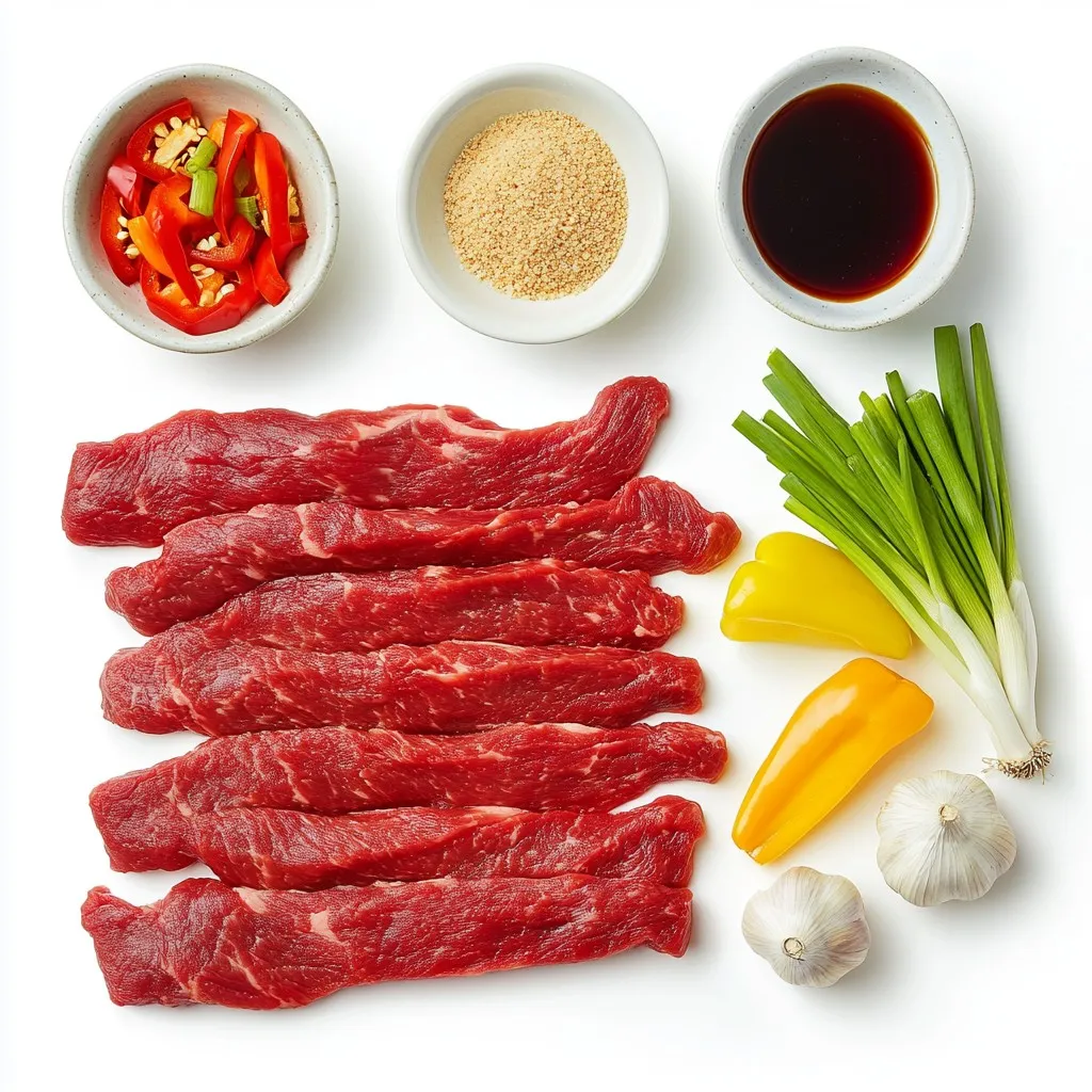 - 450 g Flanksteak, dünn gegen die Faser geschnitten