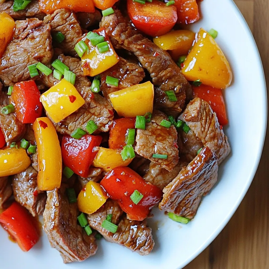 Ein schnelles und würziges Rindfleischgericht mit buntem Gemüse.