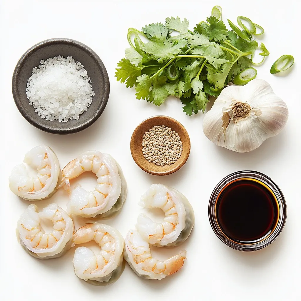 Für diese Minute Garnelen-Dumplings benötigst du einige frische Zutaten. Hier sind die Hauptzutaten: