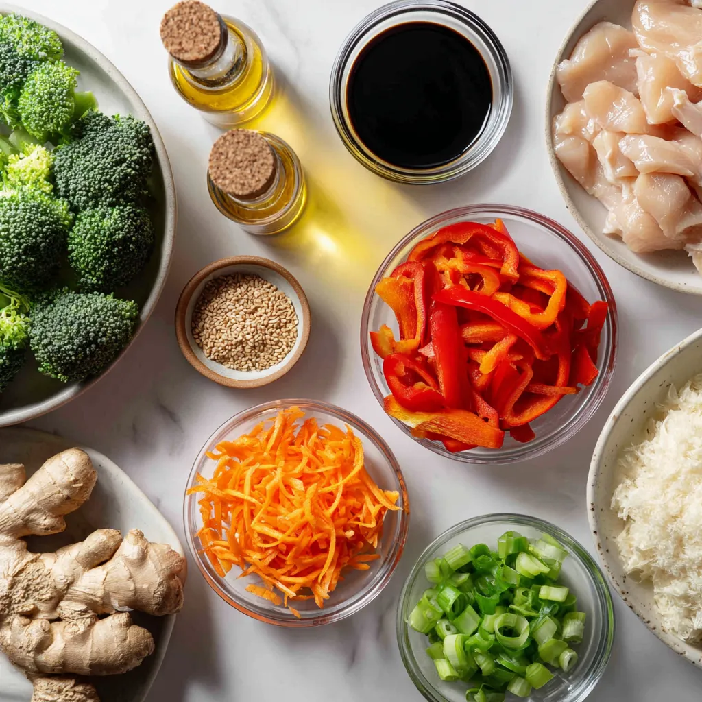 Bereiten Sie die Zutaten im Voraus vor. Schneiden Sie das Gemüse und marinieren Sie das Hähnchen, bevor Sie kochen. Das spart Zeit und macht das Kochen einfacher.