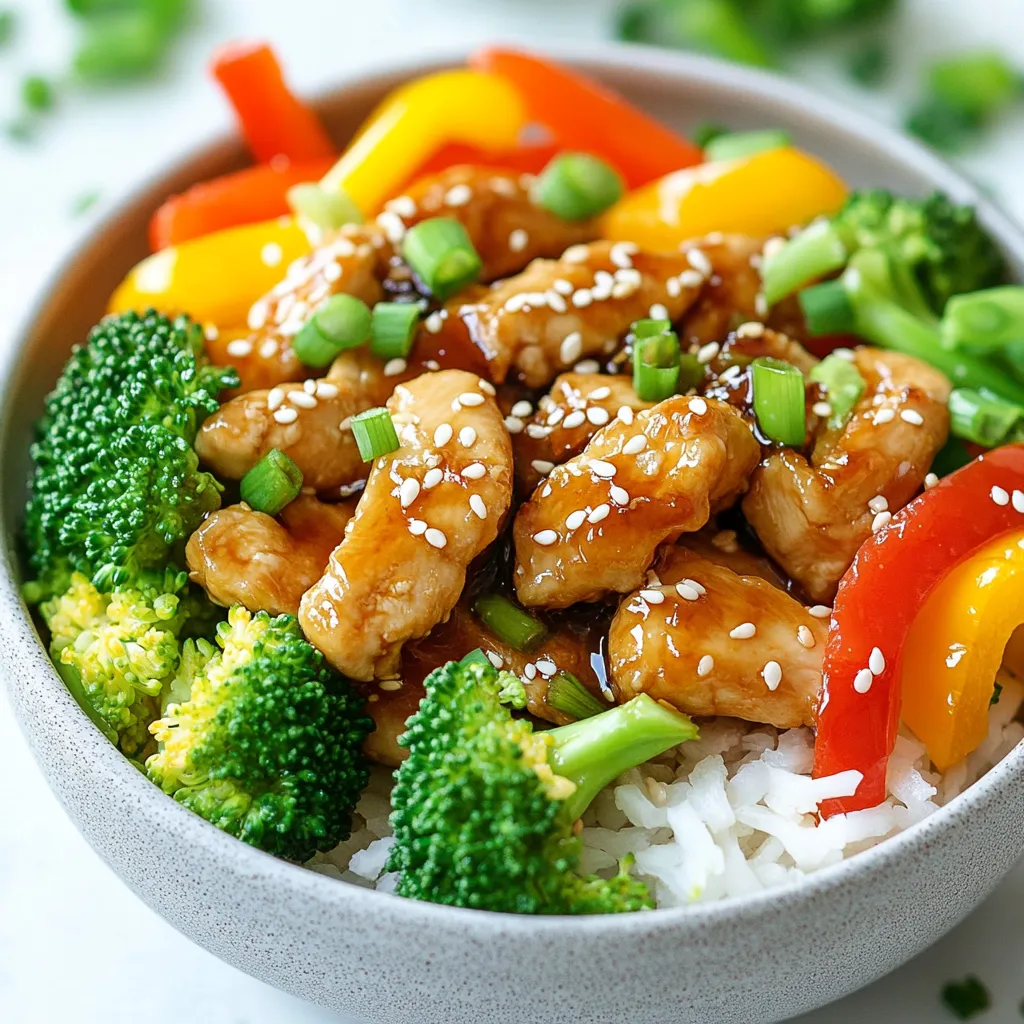 Ein schmackhaftes Pfannengericht mit zartem Hähnchen und frischem Gemüse.