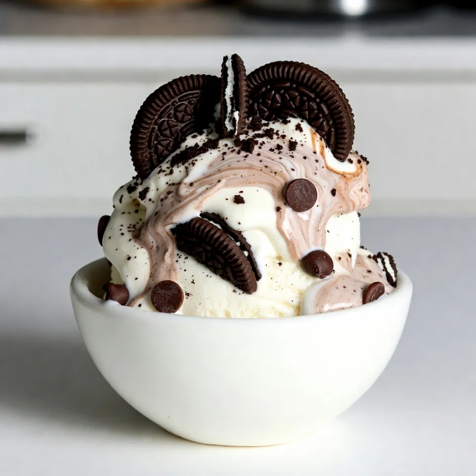 Servieren Sie das Eis in Waffel- oder Dessertschalen, garniert mit zusätzlichen zerkrümelten Keksen und einem Schokoladensirup für einen besonders feinen Akzent.