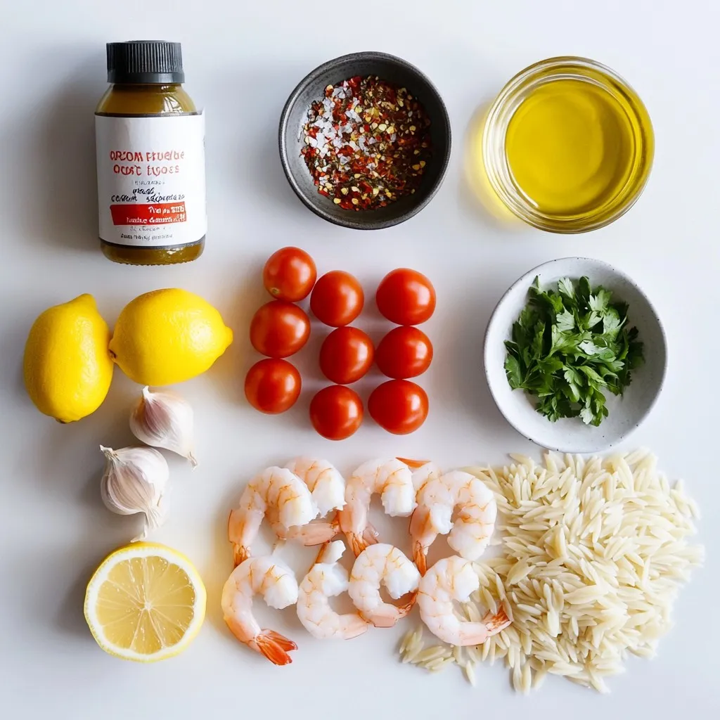 Hauptzutaten für One-Pan Lemon Garlic Shrimp Orzo