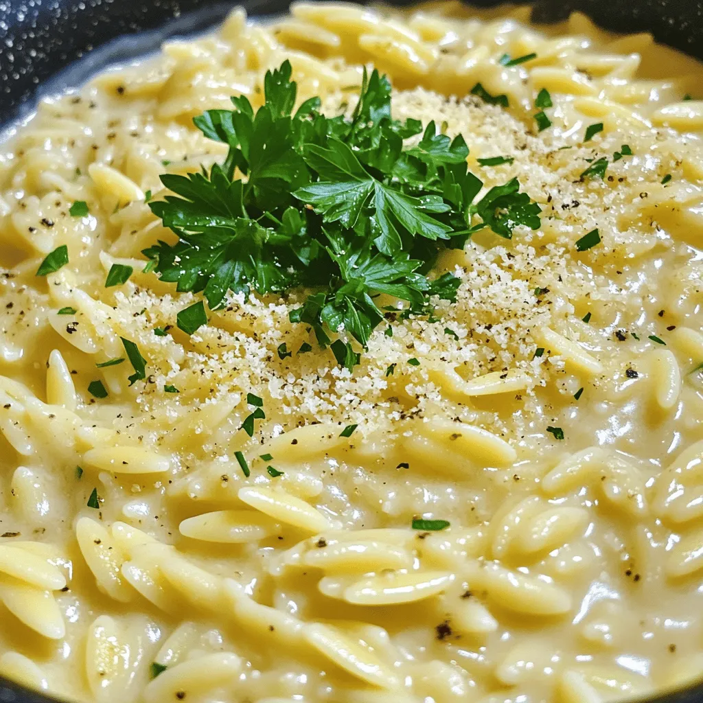 Die Hauptzutaten bilden die Basis für den Geschmack. Orzo-Pasta ist eine kleine, reisähnliche Pasta. Sie kocht schnell und nimmt die Aromen gut auf. Gemüsebrühe gibt dem Gericht Tiefe. Sie sorgt für einen herzhaften Geschmack. Schlagsahne macht das Gericht cremig und reichhaltig.