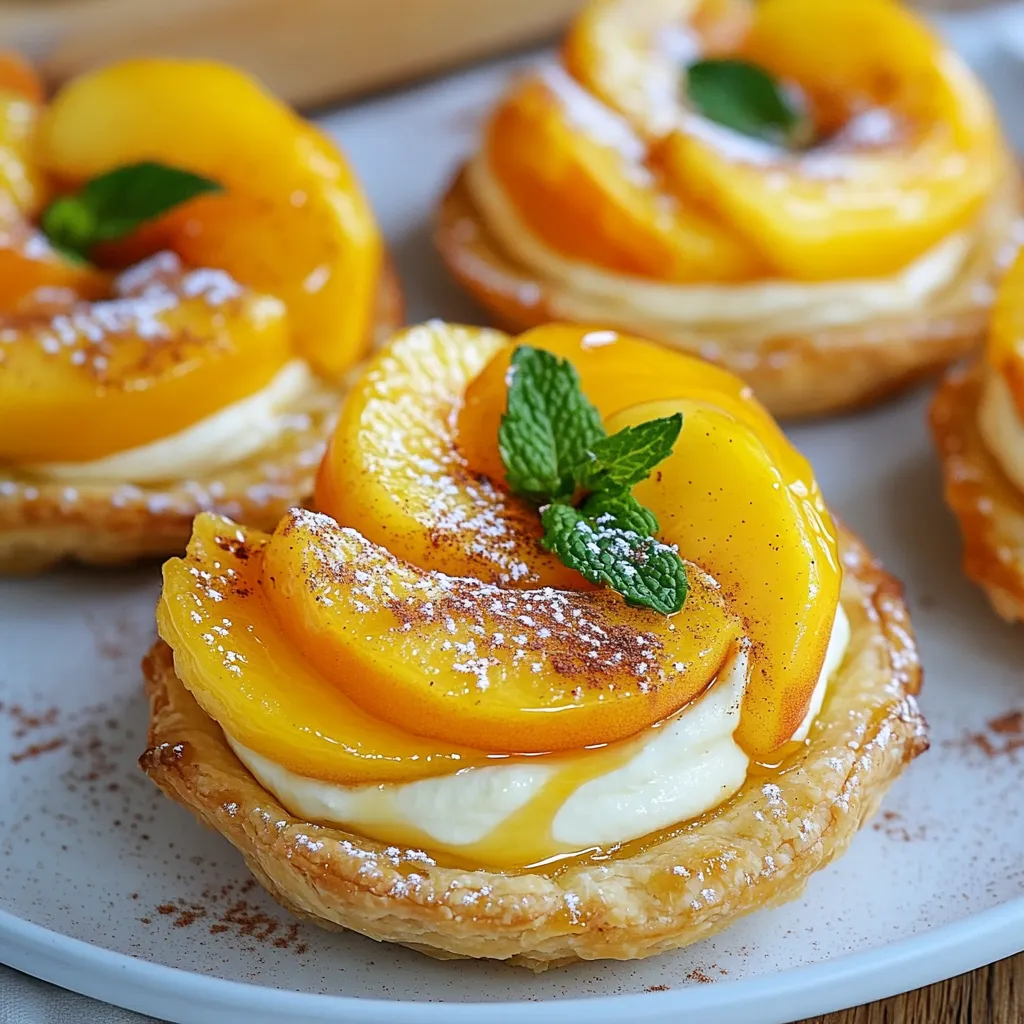 Leckere Törtchen mit einer cremigen Frischkäsefüllung und frischen Pfirsichen.