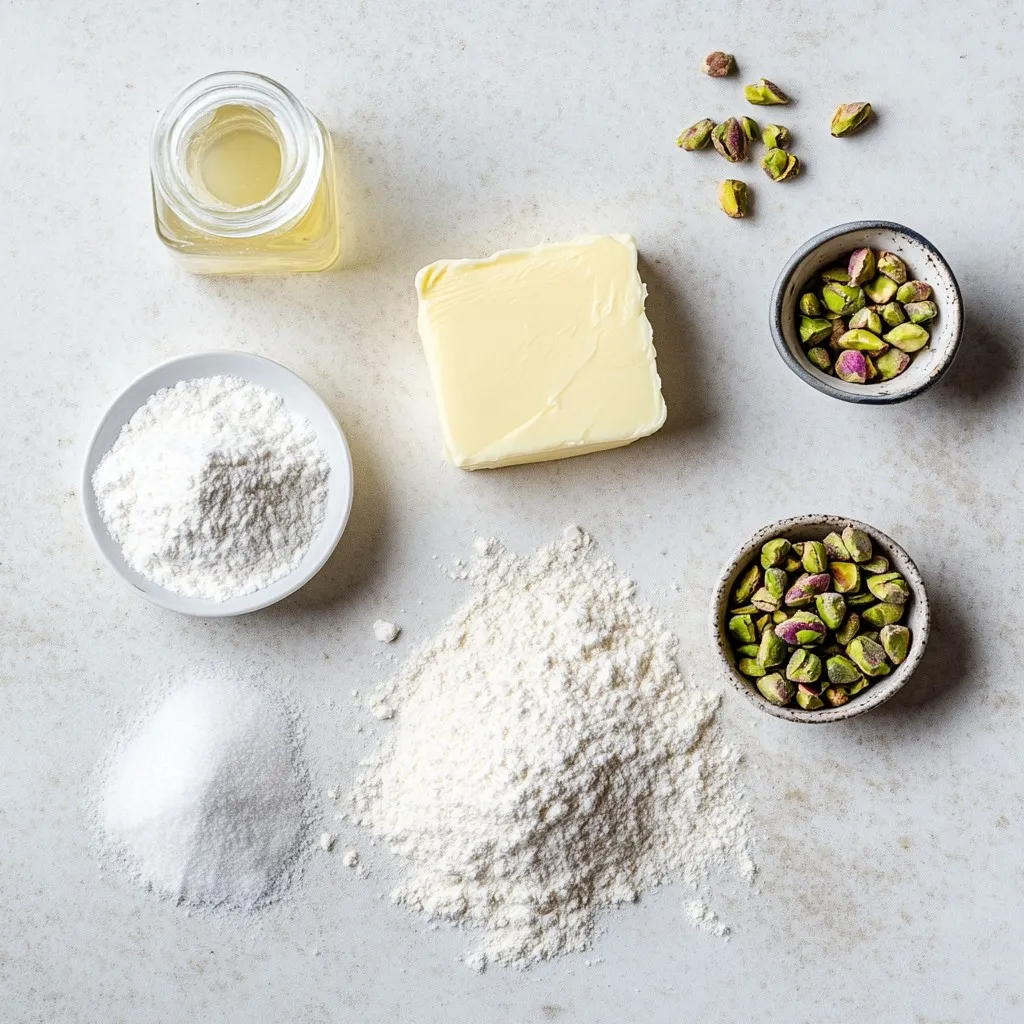Hauptzutaten für Pistazien-Rosenwasser-Shortbread