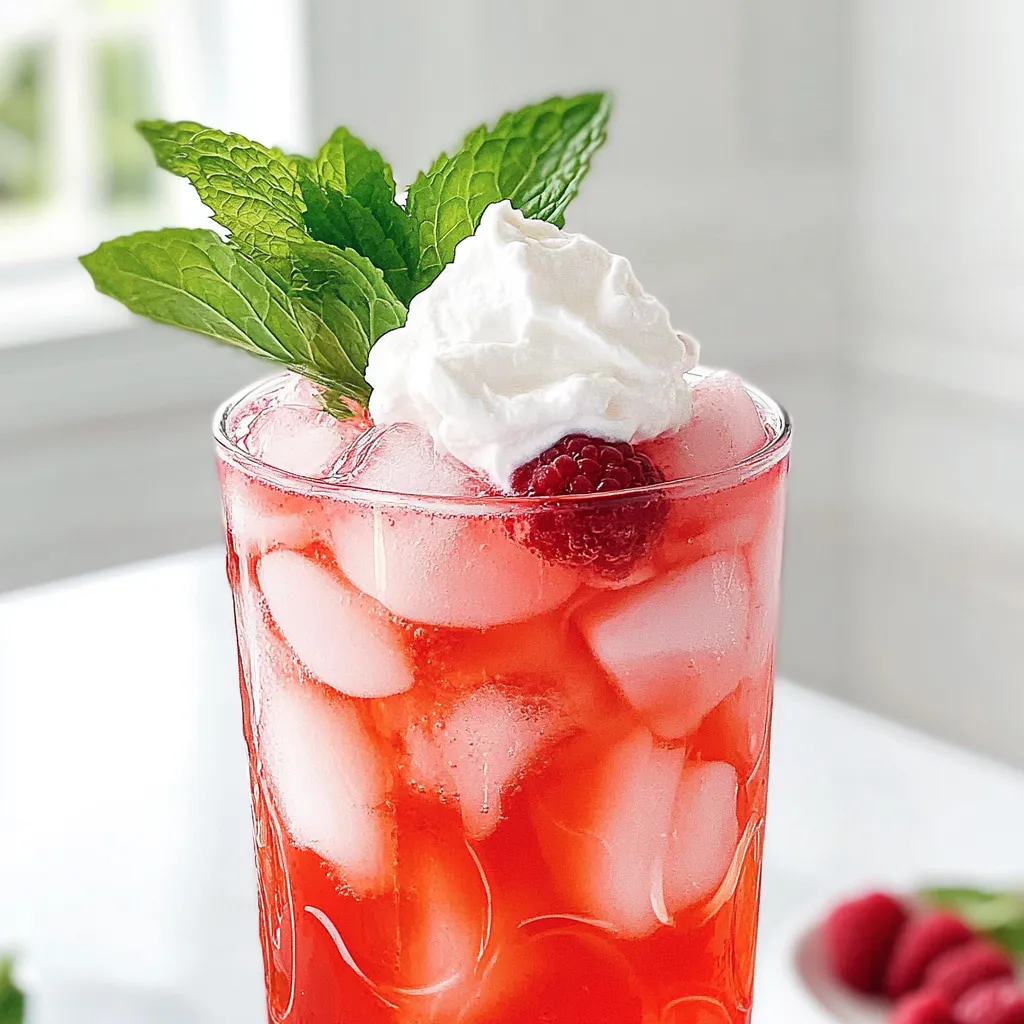 Die Zutaten für Raspberry Dream Dirty Soda sind einfach und frisch. Die Himbeeren bringen eine süße Note. Himbeersirup verstärkt den Geschmack und macht das Getränk süß. Das Mineralwasser gibt dem Drink Sprudel und Frische. Kokosnusscreme sorgt für eine cremige Textur. Limettensaft bringt einen spritzigen Kick. Die frischen Minzblätter sind das perfekte Finish.