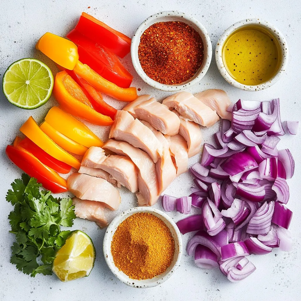 Die Hauptzutaten sind einfach zu finden und sehr schmackhaft. Hähnchenbrust ist eine magere Proteinquelle und passt gut zu den Paprika. Diese bringen Süße und Farbe ins Gericht. Die Zwiebel gibt einen tollen Geschmack. Die Gewürze wie Chilipulver und Kreuzkümmel machen die Fajitas würzig und aromatisch.