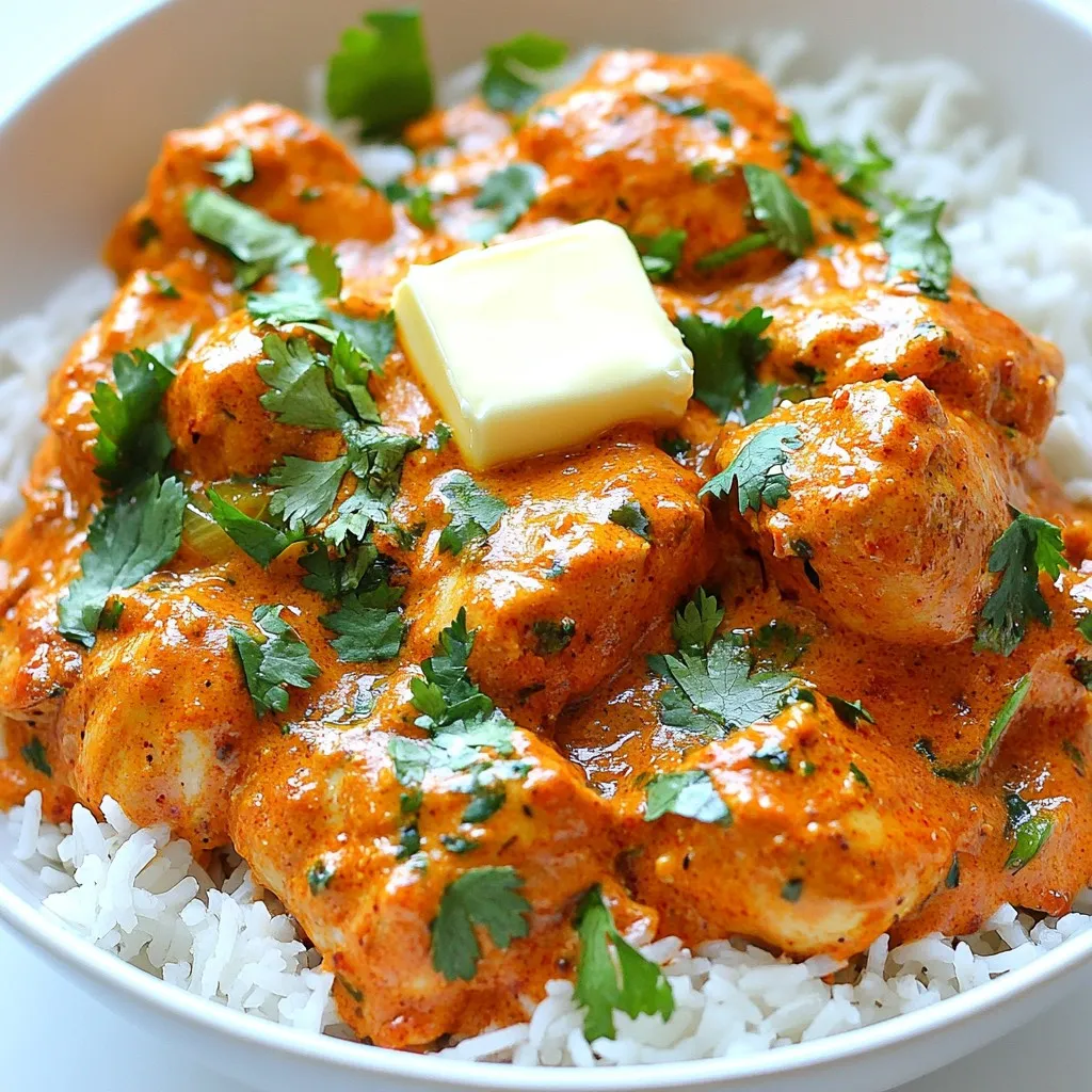 Servieren Sie das cremige Butterhühnchen über gekochtem Basmati-Reis oder zusammen mit Naan-Brot, und garnieren Sie es mit frisch gehacktem Koriander.