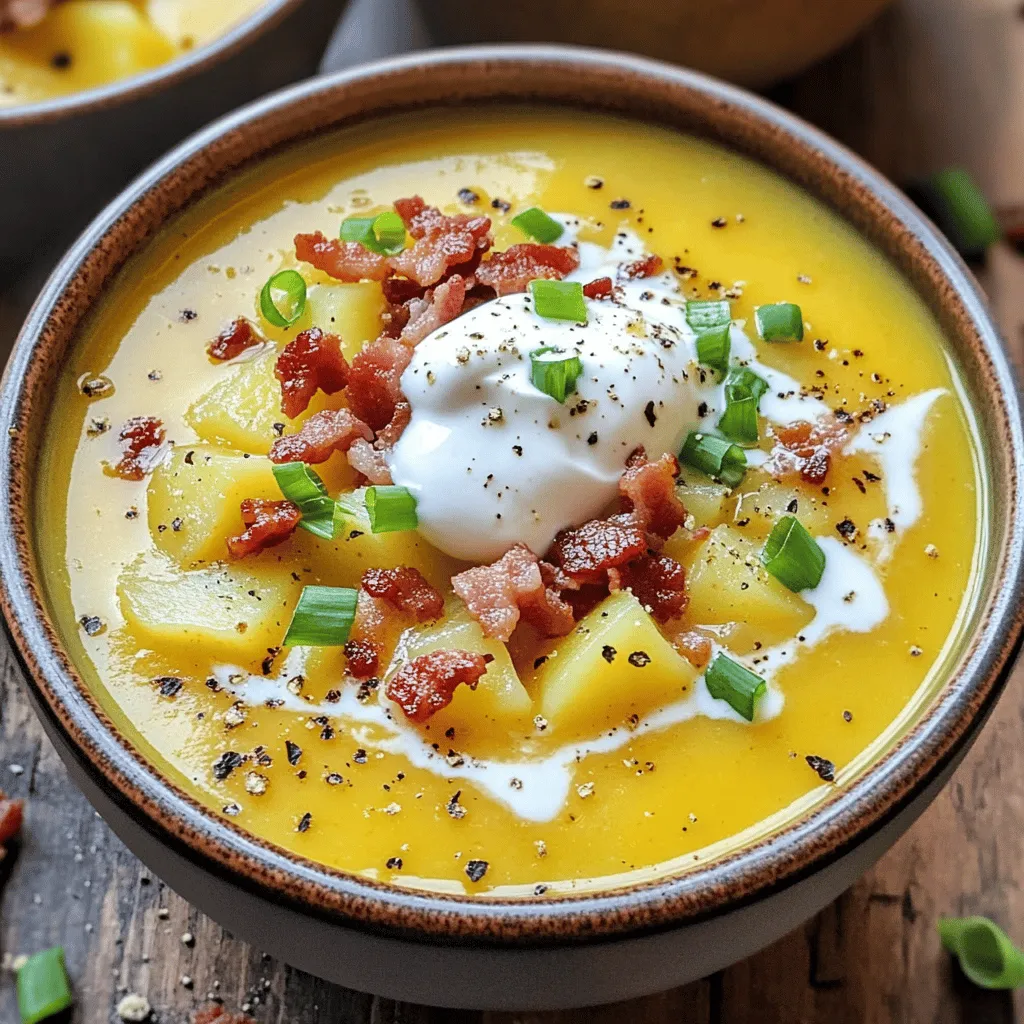 Um eine vegane Version dieser Kartoffelsuppe zu machen, tauschen Sie die Schlagsahne gegen Kokoscreme aus. Kokoscreme gibt der Suppe eine cremige Textur und einen leichten Geschmack. Verwenden Sie auch pflanzlichen Bacon, um den herzhaften Geschmack zu erhalten. So bleibt die Suppe lecker und vegan.
