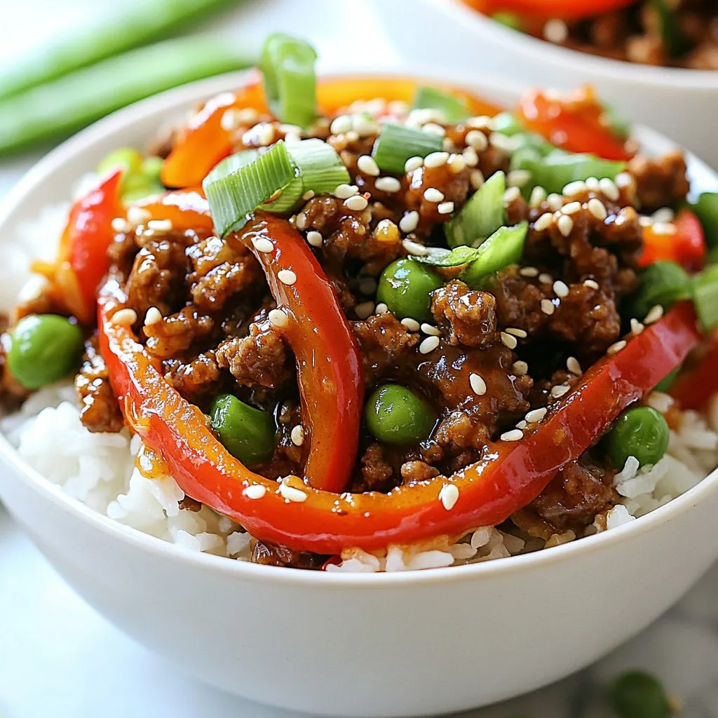Jetzt ist der beste Teil! Servieren Sie die scharfe Rinderhackpfanne auf dem gekochten Reis. Nutzen Sie tiefe Schalen, um die Farben zu zeigen. Garnieren Sie mit gehackten Frühlingszwiebeln, Sesamsamen und frischem Koriander. Diese Garnierung gibt dem Gericht einen frischen Geschmack und sieht toll aus!