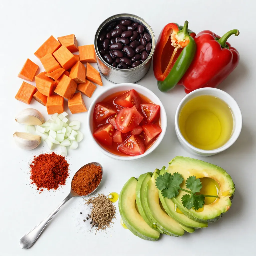 Für unser Süßkartoffel-Schwarze-Bohnen-Chili benötigen wir einige wichtige Zutaten. Diese bringen den Geschmack und die Textur, die wir lieben.