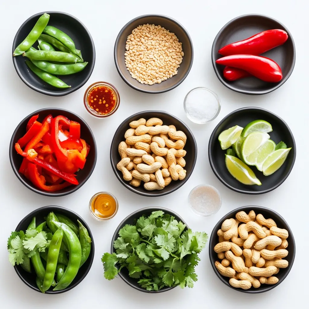 Die Erdnüsse fügen Crunch hinzu, der Koriander bringt Frische, und die Limette sorgt für einen spritzigen Kick. Diese Elemente machen das Gericht noch besser und schöner.