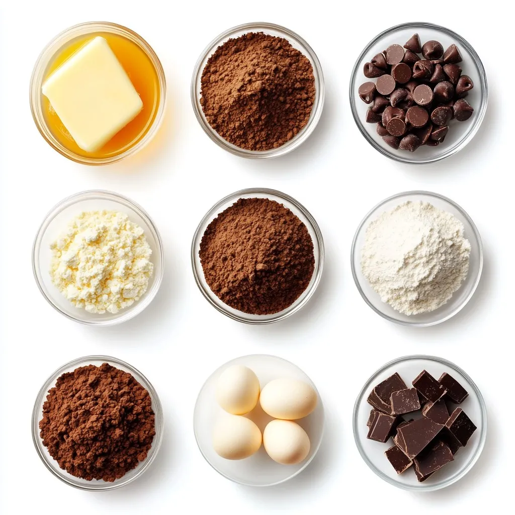 Hauptzutaten für dreifach Schokoladen-Brownie-Cookies