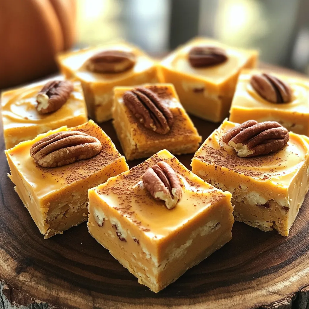 Serviere die Fudge auf einer schönen Platte. Eine Prise Zimt oben drauf macht viel aus. Du kannst auch ganze Pekannüsse als Deko verwenden. Das sieht nicht nur gut aus, sondern schmeckt auch toll. Schneide die Fudge in kleine Quadrate. So sind sie leicht zu essen und ideal für Partys oder als Geschenk.