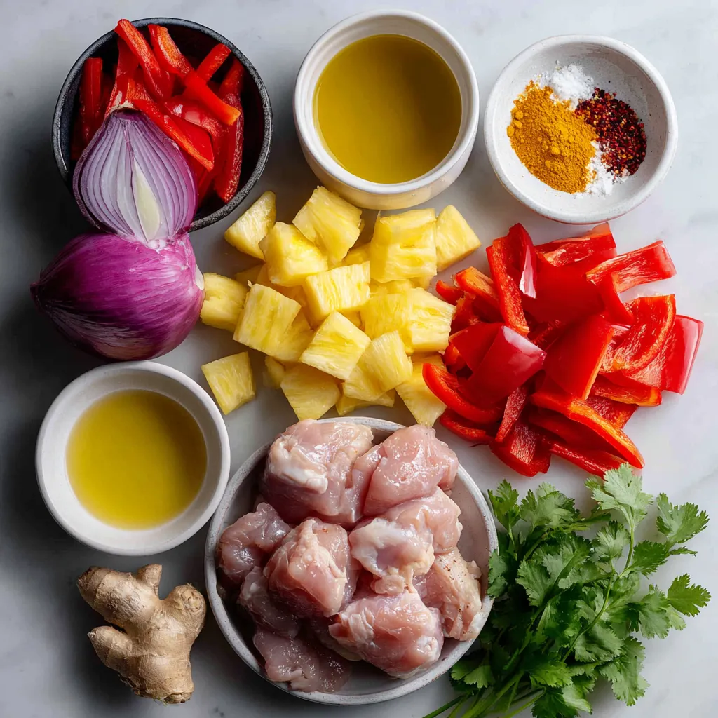 Diese Zutaten sorgen für einen tollen Geschmack und viel Farbe auf deinem Teller. Das Hähnchen bleibt saftig, und die Ananas bringt eine süße Note.